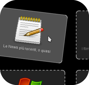 Dopo settimane di inattività mi sono deciso e ho mandato un altro po' avanti il sito. La novità più vistosa è lo sfondo delle voci nel menu principale quando il mouse ci passa sopra, infatti quella precedente (ignobile gradiente squadrato irreale e fuori dal contesto che non mi è mai piaciuto) è finalmente stato sostituito da uno sfondo (in realtà sono tre immagini) molto più smussato, appetibile e gradevole. Ah già che ci sono colgo l'occasione per annunciare il nuovo menu principale (ormai non più tanto nuovo visto che c'è da fine ottobre) anche lui molto più gradevole, anche se un po' "ispirato" a quello del sito della Apple.